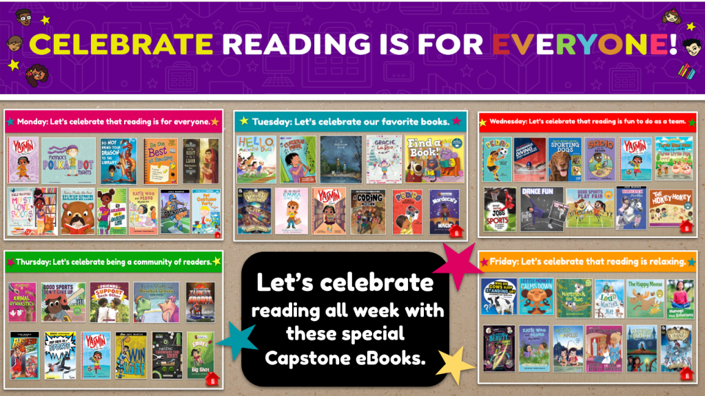 Capstone Interactive eBooks– 58 special Capstone Interactive eBooks for the Celebrate Reading Is For Everyone choice board collection that are free for Read Across America!