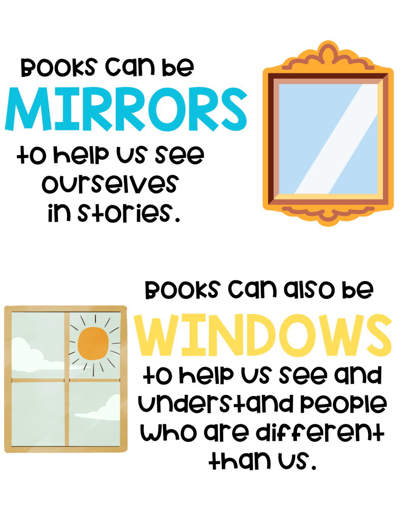 “Mirrors” in books allow children to see themselves and people that look like them; these make them feel valued, connected, and inspired. Equally important as books that reflect students’ identities are books with characters who look different from them and have experiences that are unfamiliar to them. These “window” books introduce the rich diversity our world has to offer. They build intercultural understanding, provide new and multiple perspectives and foster a sense of empathy.